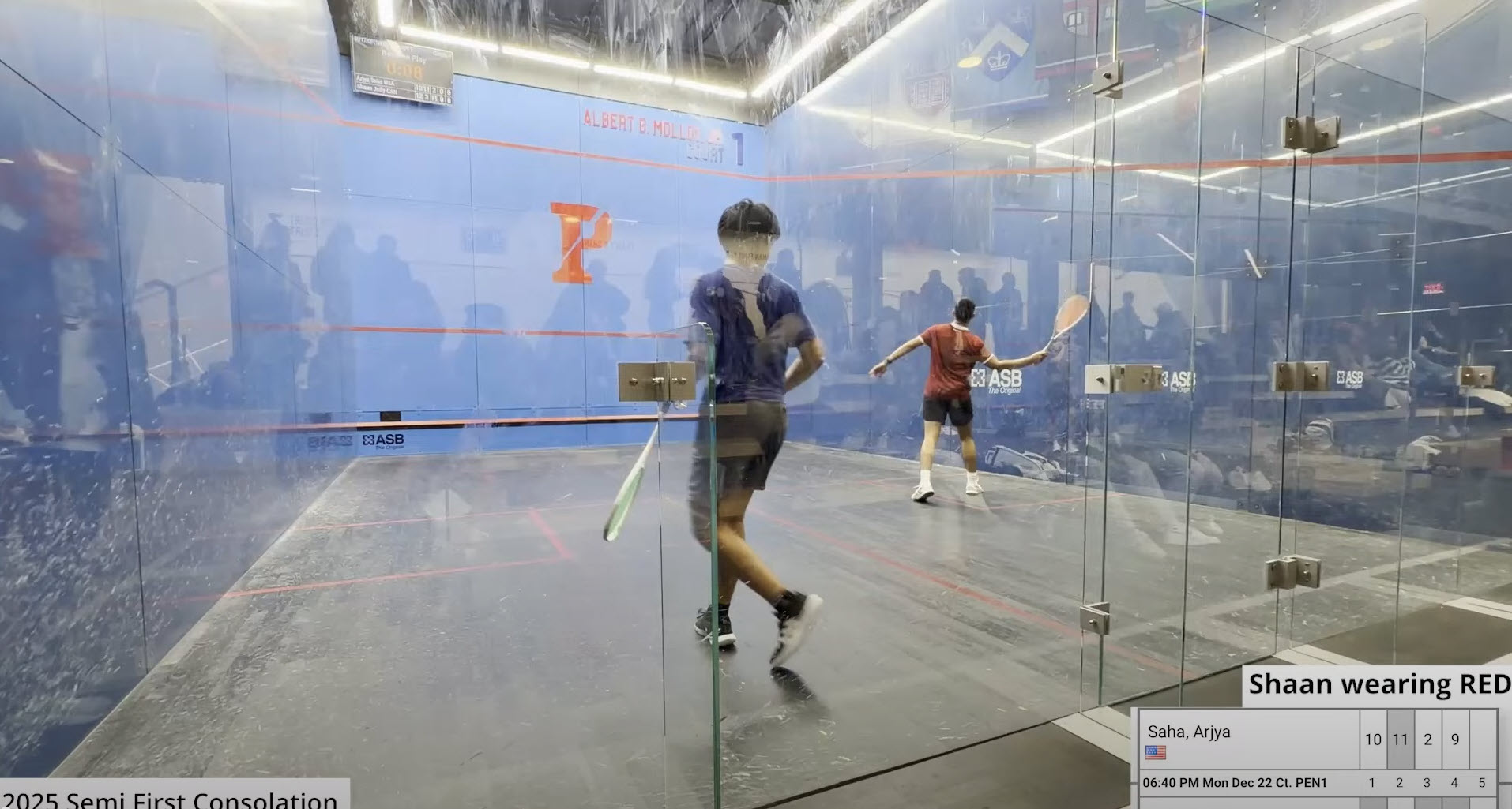 Playing for first place, my opponent in this match is a mentor and friend who will be playing Division 1 squash at an Ivy League school this fall. As a high school sophomore, I was able to win two games off him in this match.